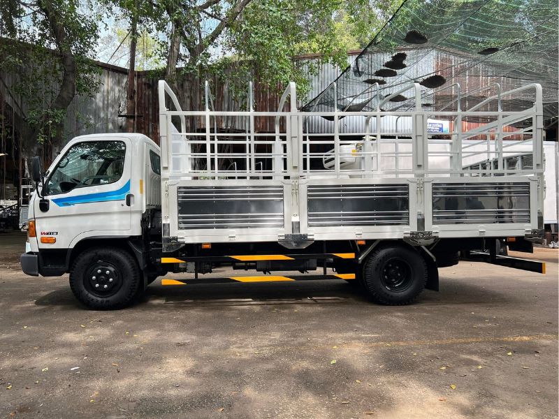 Xe có kích thước tổng thể 6.630 x 2.080 x 2.310 mm, đảm bảo không gian đủ rộng cho các chuyến hàng nặng. Kích thước lòng thùng đạt 4.960 x 2.140 x 2.020 mm đối với thùng mui bạt và 4.900 x 2.060 x 520 mm đối với thùng lửng, tạo điều kiện cho việc chuyên chở hàng hóa tiện lợi và hiệu quả.